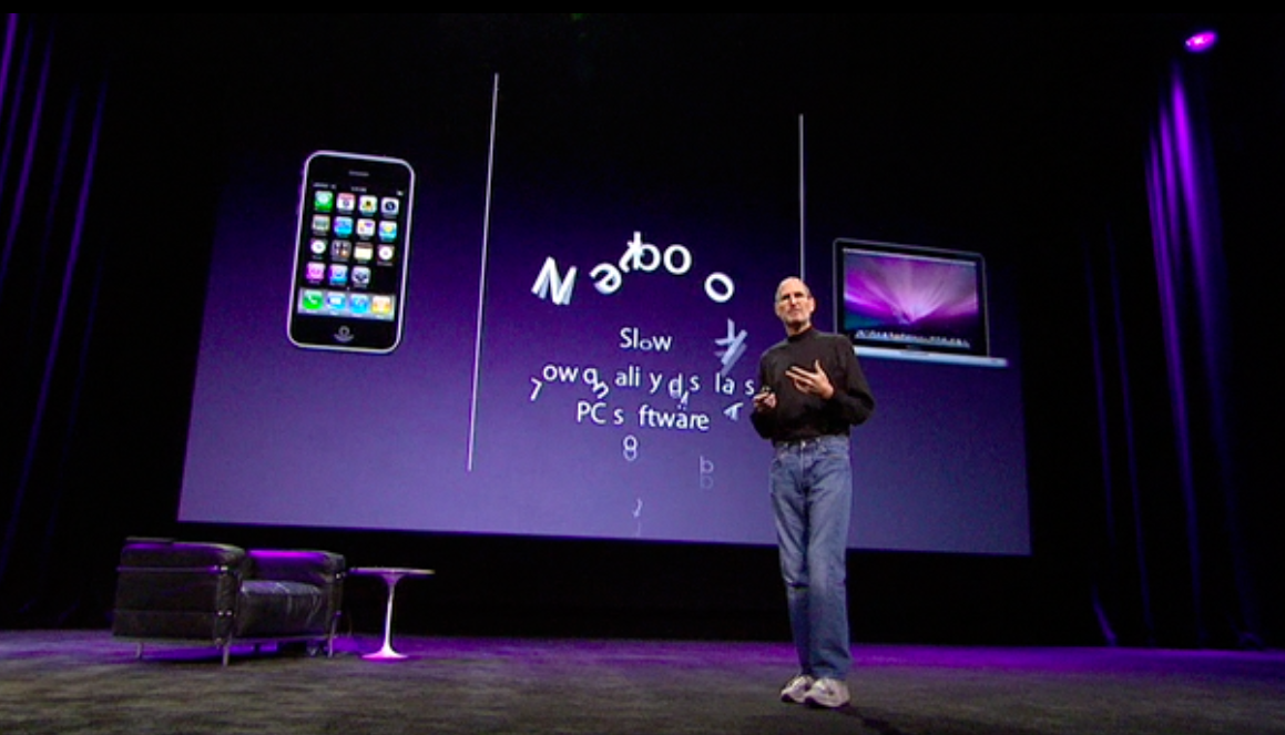 During his introduction of Keynote, Jobs emphasised that each night, we sit in front of our television sets and watch production level transitions and effects, and it was these he wanted Keynote to emulate. You don’t want to know the transitions and effects Powerpoint 97 was using when Keynote was introduced! It was no surprise the Macworld keynote attendees applauded loudly when Jobs showed these transitions. It was a paradigm shift, because we didn’t know we could have production level graphics effects on a PC, much less using software costing $99.