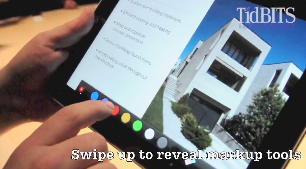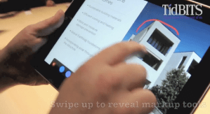 The Keynote app. also contains some new elements not yet seen in desktop Keynote, and makes the iPad an ideal small group standalone demonstration tool, as well as a great presentation assistant when attached (by cable or wireless variant) to a data projector. Note the screen shots from this TidBits video showing new highlighting tools and “laser” call out tools, below, recorded at the iPad official announcement, January 27.