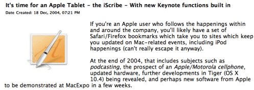 What’s interesting, apart from the false positives list, is the depth of understanding a 15 year old brings to the subject and his knowledge of terms; as well as his thinking about the iPad in the first place. I don’t know how much time he put into this, but I can guess the iPad and other Apple products are much in discussion amongst his friends and acquaintances. If you’re over 40, do you remember what tekky things you discussed when you were fifteen, in the mid-1980s? Perhaps the Mac Plus, or an Amiga or Commodore PET… Yikes!