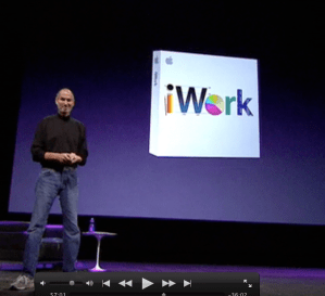 This is fifteen months out from the last iWork upgrade, taking one of its apps, Keynote, from version 4 to version 5. And we know that version 6 is waiting in the wings, if its showing at the iPad formal release this past January 27 in the hands of its most famous “beta tester” Steve Jobs can be relied upon, left.