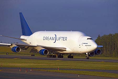 Why the car’s disguise then? Well, clearly, after the prototypes are driven around proprietary performance tracks designed to simulate a variety of motoring conditions, at some point, “real world” testing needs to take place in the sort of conditions purchasers will use the car, but incognito. The Australian outback is often used by car manufacturers to really give their cars a workout. Boeing too, in testing out their new aircraft for certification, will fly them into all manner of conditions world wide, as well as use the time for publicity purposes. It’s unfeasible to disguise the aircraft of course, and indeed mockups of what it will look like, inside and out, are known well in advance of firm orders. The analogy only goes so far. (The 747 model below is not some disguised next model, but a modified 747 to transport 787 parts)