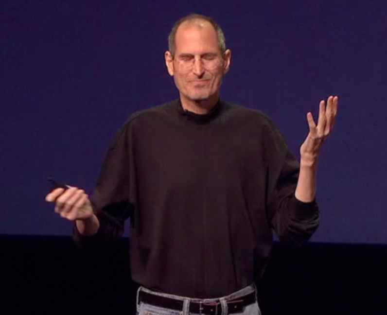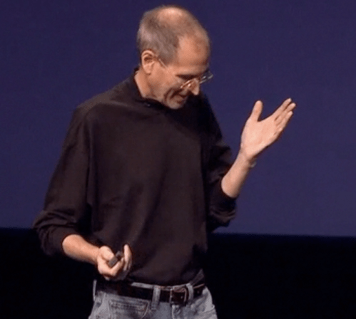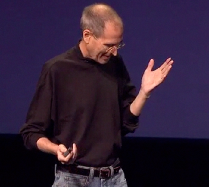 What is also known is that Jobs demands perfection of his fellow presenters. His own legendary rehearsal routines are well known, and over the years until recently he has held the stage on his own for more than two hours without reading a script, merely using Keynote’s presenter display (where he can see the current and next slide – invisible to the audience) to cue him in. I use the same method, but it requires much rehearsal knowing what stories to tell for each upcoming slide, and segueing easily between slides and their stories. It gives Jobs’ presentation an almost personal touch, as if he’s in conversation with you. (I am still amazed at how many Powerpoint users are unaware it can also employ presenter mode, perhaps because until Windows 7, using another monitor for screen splitting was a pain).