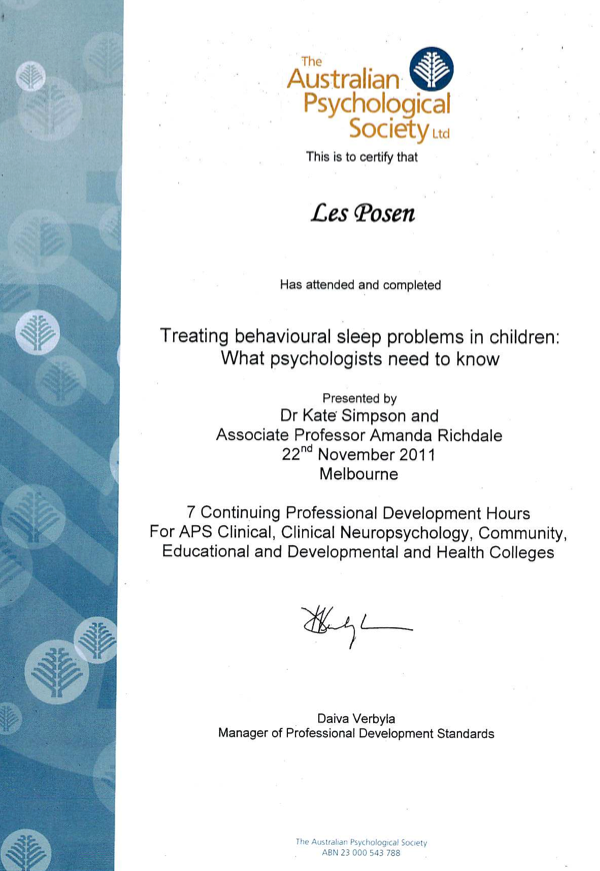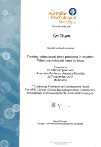In the case of this workshop, I don’t believe I have ever seen a child for a sleep disorder in 30 years of clinical work. I’m not saying I haven’t seen a child with a sleep disorder – I have. It’s more that the referral has been for some other issue such as anxiety or depression of which sleep may be a component. So I don’t hang out a shingle that this is an area of specialisation but my desire to do the workshop was to challenge myself to attend a workshop for which there is no practical purpose. Strange, huh?