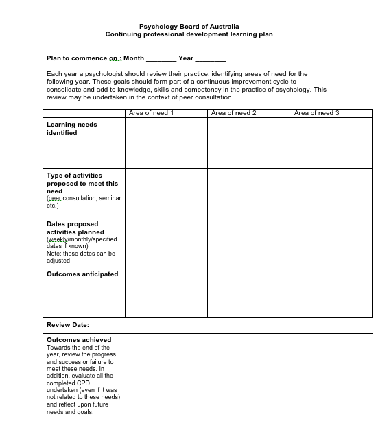 Below, is the exact form we are required to fill in at the commencement of the professional development cycle:
