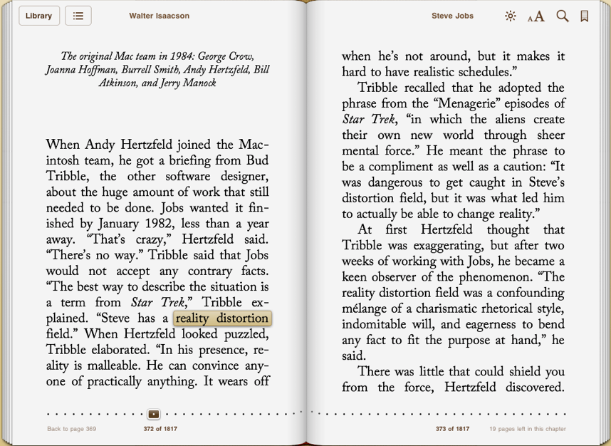 “Steve has a reality distortion field” (Bud Tribble)… “In his presence, reality is malleable. He can convince anyone of practically anything.”