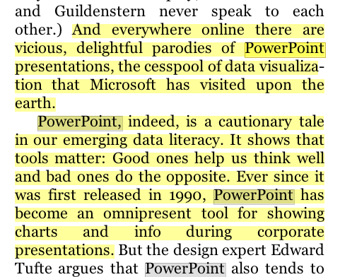 1. Rather than smoothly transitioning to the slide embedded with a video, they need to drop out of the presentation stack (revealing the remaining 300 slides), locate the video on the desktop or in a folder nested three levels down, and open it in Windows Media Player so we can see the Play and Fast Forward buttons, and how much time remains. If we’re unlucky, they will not know how to have it play fullscreen, so we see a portion of their Windows desktop screen and all their short cuts.