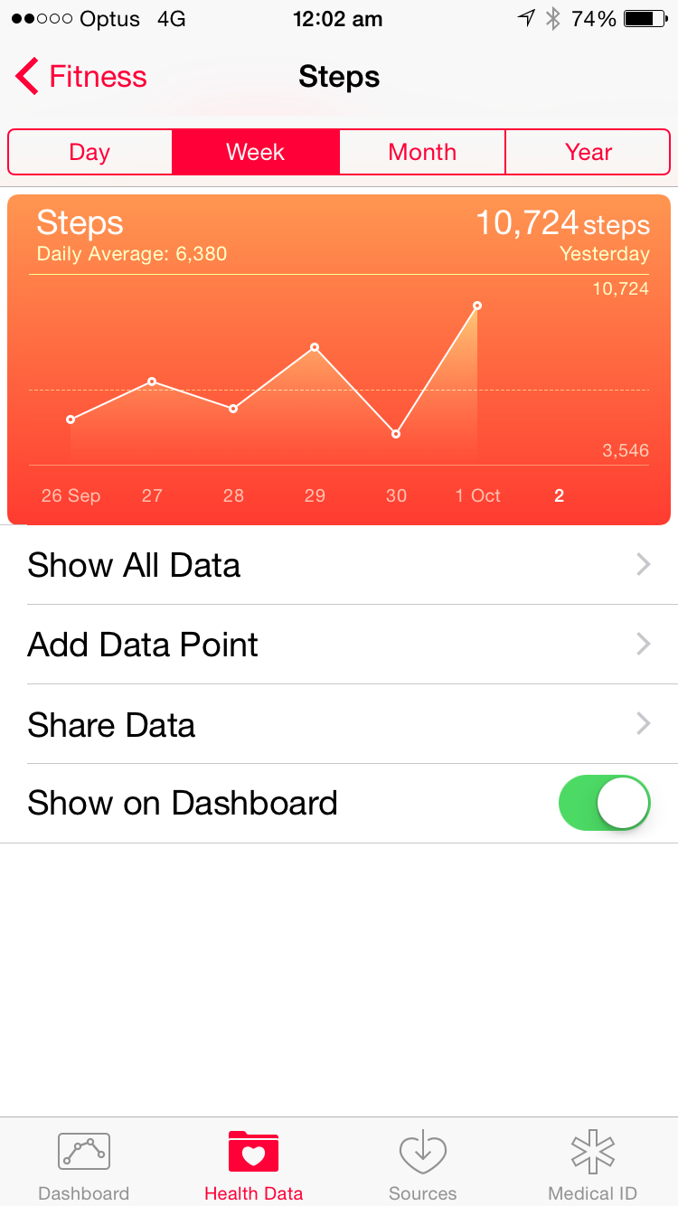 Here’s a screenshot I took of my own iPhone 6 screen showing steps taken these past few days: